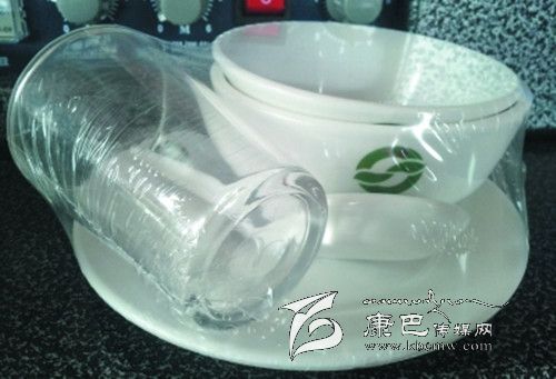 用塑料薄膜包裹的消毒餐具,內(nèi)有盤子、碗、醋碟、勺子、杯子,外加一雙筷子。當它們放到你面前時,看起來很干凈,包裝膜上還印有“衛(wèi)餐消證號”、生產(chǎn)日期和廠家等信息,看似很正規(guī)。但有時你會發(fā)現(xiàn),戳破那層膜,部分消毒餐具會有污跡、飯菜渣或水跡等。這些餐具都是經(jīng)過高溫消毒的,為何會有這些污跡?它們是怎么漂洗出來的?又是怎么消毒的?
