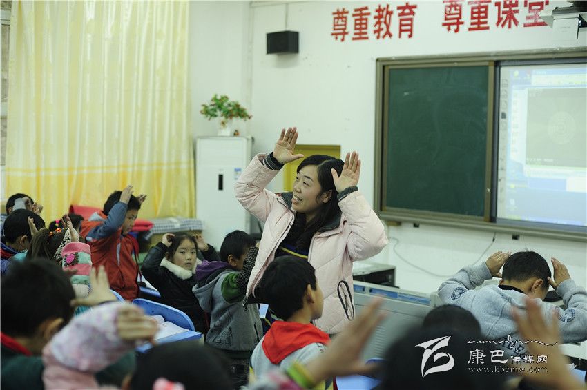 “同學(xué)們,我們?cè)賮?lái)練習(xí)一下好嗎?”孩子們齊刷刷地隨著音樂(lè)又唱又跳,《鵝》、《春眠》、《小雨沙沙地下》三首歌曲之后孩子們興致高漲、喜笑顏開(kāi),裴老師一個(gè)暫停手勢(shì),教室立刻安靜下來(lái),緊接著就是密集的移動(dòng)桌椅的聲音,30多張書(shū)桌很快又被排放得整整齊齊,整個(gè)過(guò)程老師沒(méi)說(shuō)一句話(huà),這群六七歲的孩子卻仿佛久經(jīng)訓(xùn)練的士兵反應(yīng)迅速而有序。