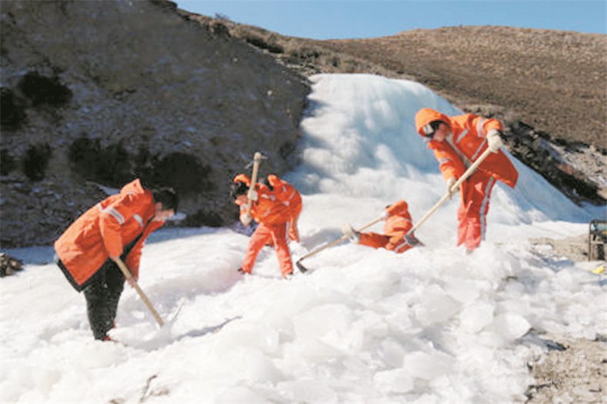 本網(wǎng)訊 海拔4500多米,朔風(fēng)勁吹。1月24日上午,稻城縣公路分局無名山養(yǎng)護(hù)段的5名養(yǎng)護(hù)工人冒著嚴(yán)寒一路從稻城縣桑堆鎮(zhèn)排查國道227線至無名山埡口,當(dāng)天沿途排查了幾處積冰上路隱患。據(jù)了解,每年11月至來年3月,該養(yǎng)護(hù)段工人每日上午9時至下午14時,都會開展轄區(qū)公路巡查,一旦出現(xiàn)路面結(jié)冰迅速組織搶通保暢。