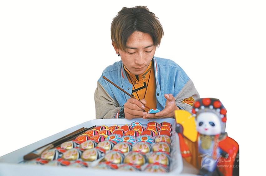 本著自主自愿的原則,教學(xué)班結(jié)束后,65名藏族青年主動加入扶貧彩繪實(shí)訓(xùn)班,成為項(xiàng)目的第一批學(xué)員?!皩?shí)訓(xùn)期間不需要交任何費(fèi)用,還包吃住。我對畫京劇臉譜很有興趣,我們第一個(gè)月學(xué)習(xí)繪畫基本功,第二個(gè)月開始,根據(jù)成品質(zhì)量,就可以計(jì)件得酬勞,學(xué)習(xí)期間我每月能掙500多元。”邛批說。