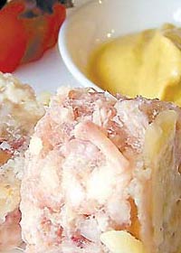 彝族風(fēng)味肉凍,這是彝族地區(qū)較為講究的一種菜肴。它采用豬蹄和肘子制做而成。一般做法是將肉放入鍋內(nèi)煮軟后撈起,剔去骨頭并將肉宰碎,放上木姜、生姜、花椒等佐料,有的還放橘子皮,或雞蛋之類的東西,然后放回鍋里煮上一陣,以便使佐料滲入肉中,最后放入木缽內(nèi),放上一夜即成。肉凍柔軟可口,香味獨(dú)特,是彝族十分喜愛的一種食品。